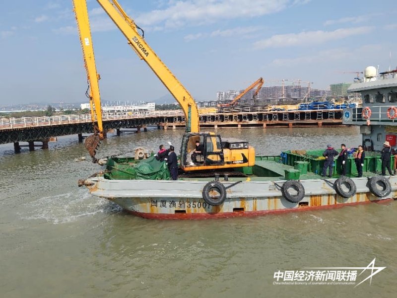 ▲钩机船施工现场