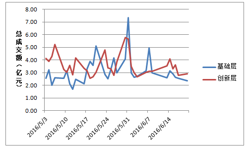 这一成交额数据较此前并无明显差异,创新层流动性并未显著改善,基础层流动性也并未恶化。
