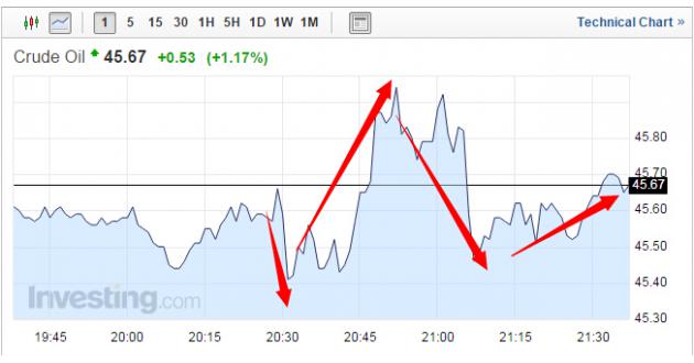 美国的非农就业人口暴增,还提升了市场对原油需求增长的预期,布伦特原油9月期货最高曾触及47.22美元桶,美国原油期货一度飙升至45.97美元/桶而后又震荡下行。