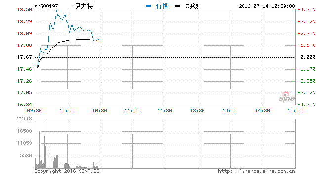 7月14日消息,周四早盘,白酒股表现活跃,截至发稿,伊力特(17.960,0.29, 1.64%)涨近4%,古越龙山(10.930, 0.20,1.86%)、金徽酒(39.960, -0.17, -0.42%)涨逾2%,青青稞酒(22.590, -0.01, -0.04%)、会稽山(14.500, 0.06, 0.42%)等个股涨幅居前。