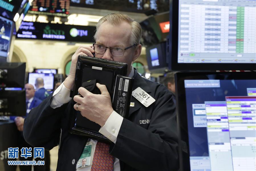 2月1日,交易员在美国纽约证券交易所工作。纽约股市三大股指在2月的第一个交易日上涨。截至当天收盘,道琼斯工业平均指数比前一交易日上涨26.85点,收于19890.94点,涨幅为0.14%。标准普尔500种股票指数微涨0.68点,收于2279.55点,涨幅为0.03%。纳斯达克综合指数上涨27.86点,收于5642.65点,涨幅为0.50%。新华社/美联