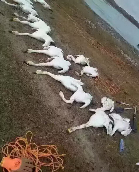 10月23日下午,有微博网友发帖称,内蒙古自治区锡林郭勒盟正蓝旗天鹅湖畔,有数百只天鹅被杀。