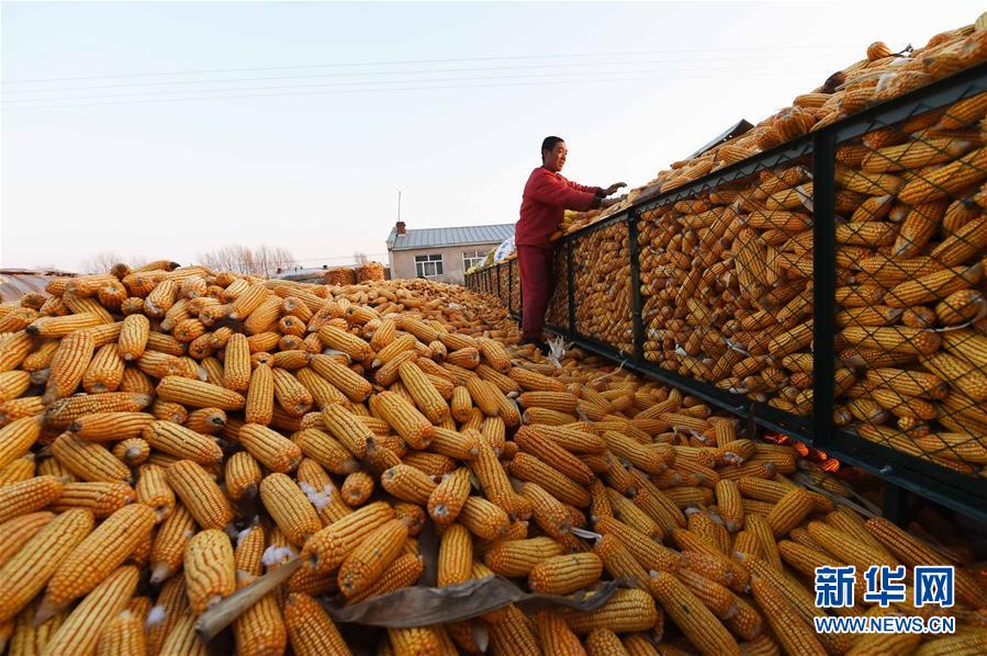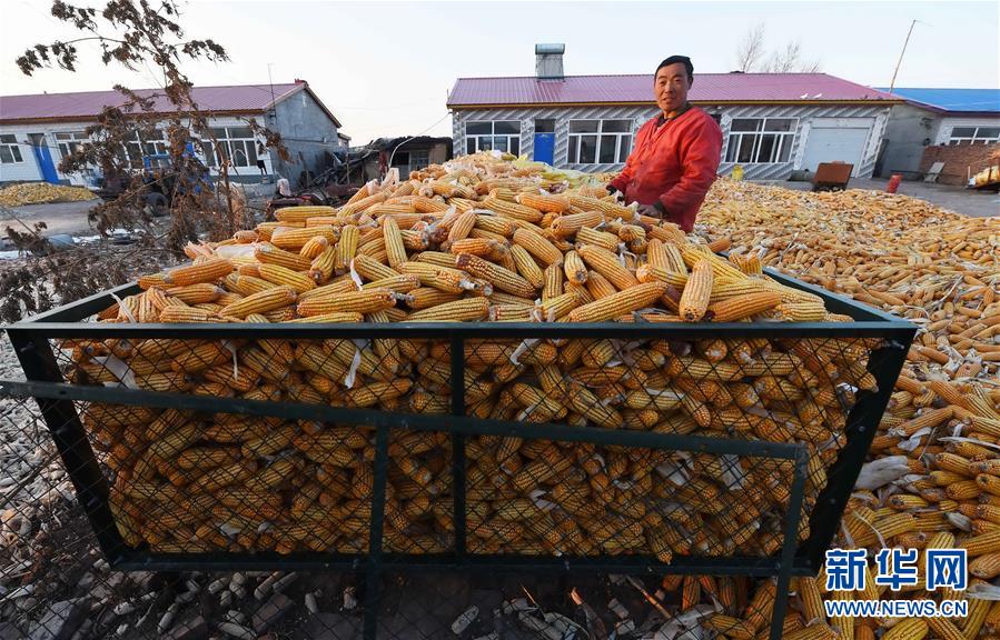 在黑龙江省肇东市昌五镇昌平村,农民王智东在自家的“科学储粮仓”里整理玉米(10月31日摄)。在各级财政补贴支持下,家种100多亩玉米的黑龙江省肇东市昌五镇昌平村农民王智东今年只花了500多元就买到了可以容纳近30亩玉米产量、容量约为20吨的“科学储粮仓”,为玉米存储提供了保障。肇东市今年共投用了1700多个“科学储粮仓”,改变了以往将玉米堆积在地上的存储方式,有效减少玉米变质、发霉、受污染等损耗。新华社记者王建威摄