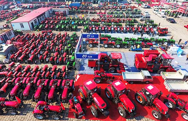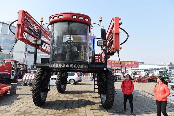 3月16日,农民在黑龙江省汽车农机大市场挑选农机。