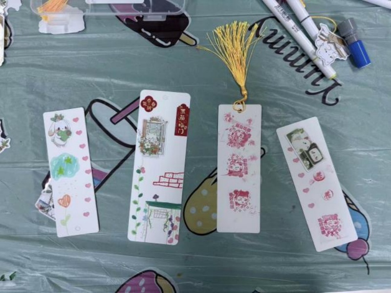 活动现场,书签成为孩子们表达内心世界的奇妙画布。五颜六色的彩笔、形态各异的贴纸、闪亮的亮片与丝带整齐陈列,仿佛一个微缩的创意乐园。孩子们或专注勾勒线条,或大胆涂鸦上色,或精心拼贴组合,在自由创作中尽情释放天马行空的想象力。一片树叶可以变成小船,一颗星星可以化作皇冠,每一笔、每一贴,都是孩子心中独特审美的生动呈现。