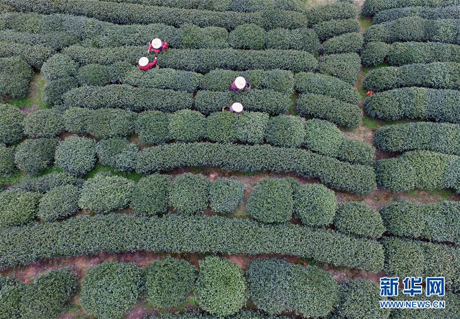近日,在浙江杭州西湖龙井茶原产地之一的梅家坞村,采茶工趁着晴好天气,忙着采摘西湖龙井茶。由于受前期持续阴雨天气影响,今年西湖龙井茶全面开采期比往年有所推迟。