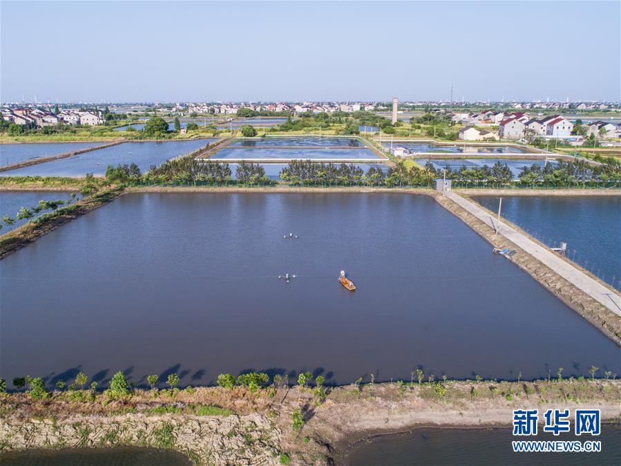 这是5月9日航拍的渔大哥水产养殖专业合作社的千亩生态养殖基地。近两年来,随着浙江湖州市各乡镇水体治理工作推进,当地水质得到不断改善,水产养殖户因此受益。湖州织里镇上林村的渔大哥水产养殖专业合作社52名成员及周边300多户抱团养殖户利用优质水源,将经营重点逐步由鳜鱼养殖转向对水质要求更高的鳜鱼苗种繁育,并于2016年推行鳜鱼设施化养殖模式,大大提高了单位水体产量,闯出一条“技术养鱼”“生态养鱼”的转型升级之路。新华社记者 徐昱 摄