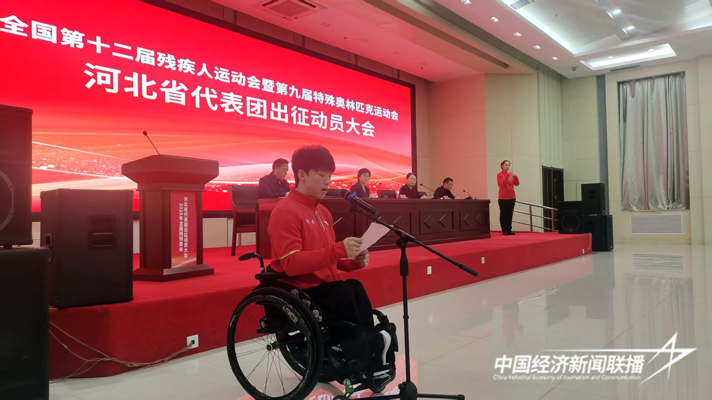 中经联播讯(通讯员 白梅)全国第十二届残运会暨第九届特奥会开赛在即,12月3日第34个国际残疾人日当天,河北省代表团出征动员大会在石家庄举行。省残联党组书记、理事长、代表团副团长史建伟通报了河北省代表团备战及参赛情况,省体育局党组成员、副局长、代表团副团长田建功宣读本次比赛河北省代表团赛风赛纪和反兴奋剂管理办法,运动员、教练员和工作人员代表分别表态发言,全体运动员郑重宣誓。河北省代表团在石集结的运动员、教练员及相关工作人员参加会议。