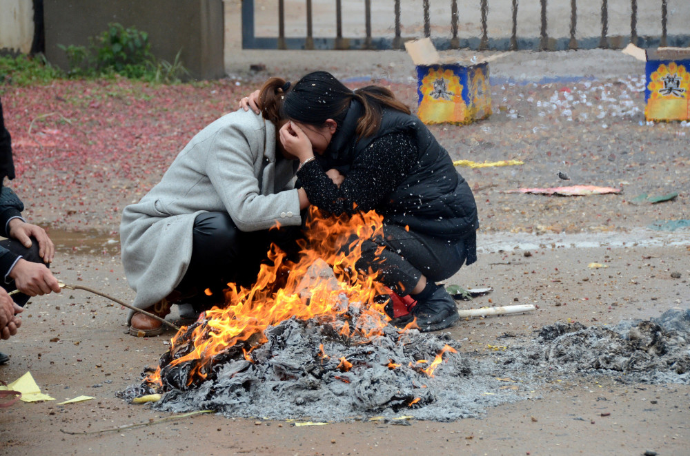 2016年11月26日,江西丰城,部分遇难者的家属从河北、湖北等地赶到事发冷却塔附近祭奠亲人。