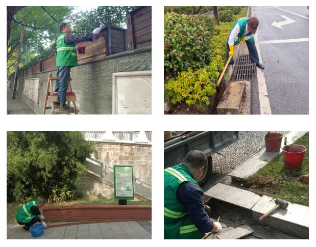 冬季亦是园林基础设施养护的关键时段,园林绿化中心同步开展花坛侧石、树围石、廊亭座椅、游步道等基础设施维修作业,全面提升绿化景观完整性与安全性。在城区各游园内,养护人员携带油漆、水泥砂浆等,对松动、破损的花坛侧石进行重新固定与修补,累计修复侧石30余处;针对长期受车辆碾压、碰撞导致移位的树围石,逐一调整位置并加固缝隙,共完成100余块树围石的维护;对锈蚀、破损的木质花坛进行除锈和刷漆处理,有效消除安全隐患,让园林设施与绿化景观形成“整体美”。