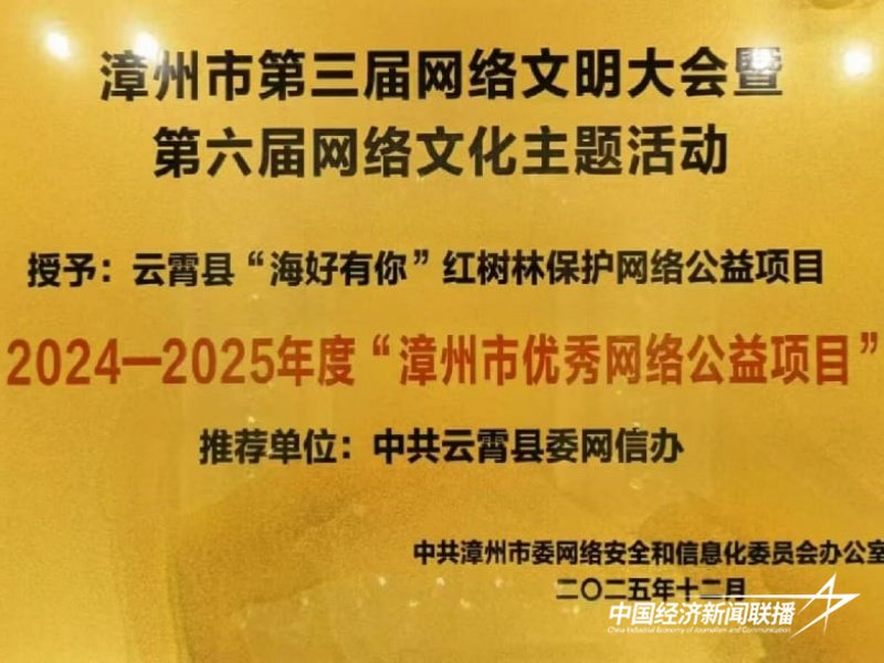 云霄县“海好有你”红树林保护网络公益项目获评2025年度漳州市优秀网络公益项目,项目借互联网发动社会参与红树林保护,构建三级保护网络,累计惠及群众4万人次,提供沿海生态保护“云霄经验”。
