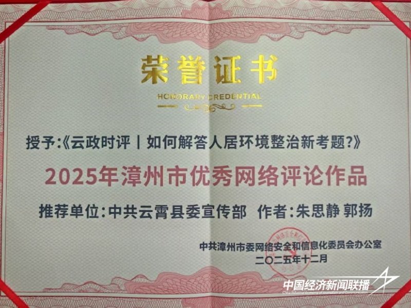 《云政时评丨如何解答人居环境整治新考题?》获评2025年度漳州市优秀网评作品,该作品紧扣云霄县人居环境整治实践,以“初心、恒心、匠心”破题,为基层治理提供鲜活样本。