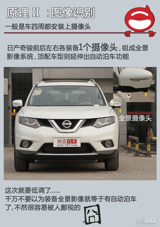目前市面上常见的自动泊车系统大体上有两种:一是采用多个超声波雷达探头,探测车位和障碍物,并经过计算,停入车位;二是通过多个摄像头,同样采用一套算法,让车辆停入其中。前者在欧美车型上较为常见,而后者多见于日系车型。