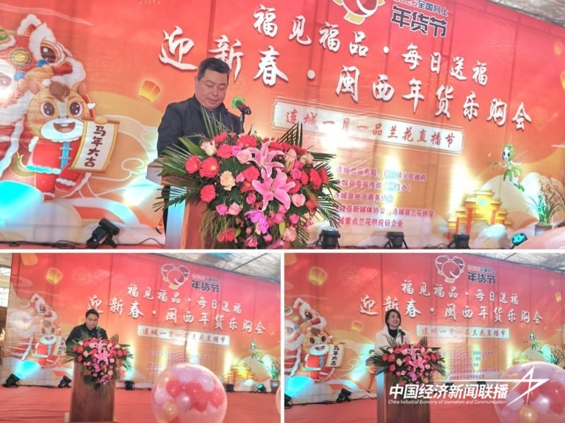 中经联播讯(马海彤 应晓丹 通讯员 黄水琴)1月9日,由龙岩市商务局指导、连城县商务局主办、县电商协会承办的“2026全国网上年货节”暨连城“一月一品”兰花直播节开幕式在福建省龙岩市连城县朋口兰博园盛大启幕。