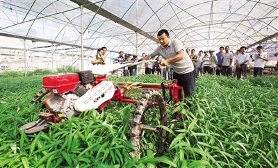 7月8日,南果蔬菜种植基地,海南省三亚市南繁科学技术研究院工作人员正在演示操作蔬菜自动起根机。据了解,随着蔬菜自动起根机在收获空心菜的应用,海南首次实现空心菜种植、收获的全机械化作业。据介绍,经过大半年试验,三亚南繁院引进的蔬菜自动播种机和收割机初步试验成功。