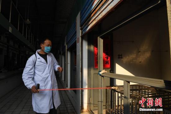 资料图:2月16日,安徽合肥王卫社区卫生防疫工作人员对活禽市场进行喷洒消毒药水消毒。 中新社记者 韩苏原 摄