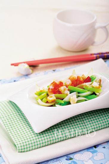 材料:西芹200克、鲜百合140克(干百合也行)、枸杞10粒、盐适量、鸡精少量、油2大匙(约30ml)。做法:1。鲜百合去老皮和蒂,拆散洗净(干百合用水泡发,沥干待用),西芹去老筋,洗净,斜切成片,枸杞用水泡发,沥干待用。2。西芹放入沸水焯过,捞出迅速放入冰水中,沥干待用。3。炒锅烧热,放入油,烧至5成热,放入西芹快速翻炒。4。加入百合快速翻炒,炒至百合略透明。5。加入枸杞同炒,加入盐、鸡精调味即可。芹菜有旱芹和水芹两种,性寒凉,味甘微苦,入肝、胃、膀胱经,含蛋白质、胡萝卜素、维生素A/B/C/P及多种氨基酸、矿物质等。从减肥角度来看,有降脂降压、软化血管的作用,对肥胖症、冠心病、糖尿病等有辅助效果。