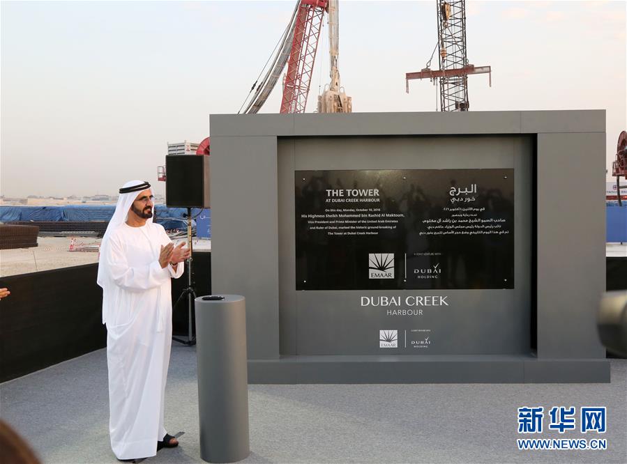 10月10日,在阿联酋迪拜,阿联酋副总统兼总理、迪拜酋长穆罕默德·本·拉希德·阿勒马克图姆为未来“世界最高塔”启动奠基仪式。