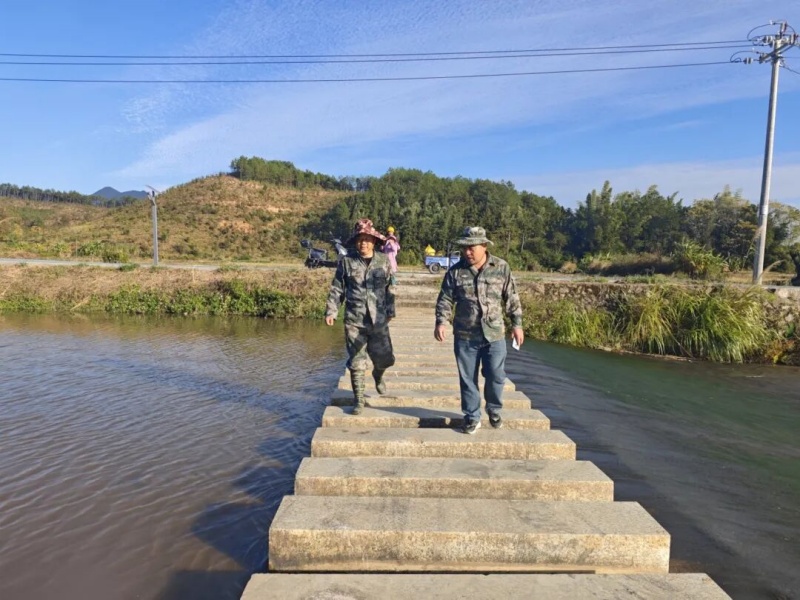 “巡河不能走过场,必须眼到、手到、心到!”邱中华给自己立下“每日必巡、每周细查、每月攻坚”的规矩。无论是盛夏酷暑还是寒冬冷雨,清晨的河畔总能看到他忙碌的身影:弯腰捡拾垃圾、清理漂浮物、检查排污口、巡查饮用水水源地石径岭水库……他的迷彩服上,常沾着泥水与汗渍,却始终干劲十足。2024年汛期,五里村遭遇强降雨,水库山塘水位暴涨。邱中华带领村干部连夜巡查,转移危险区域群众,冒雨疏通堵塞的排水沟。村民回忆:“那晚雨大得看不清路,邱书记的迷彩服全湿透了,但他一直喊着‘先顾老人孩子’,自己最后才撤离。”