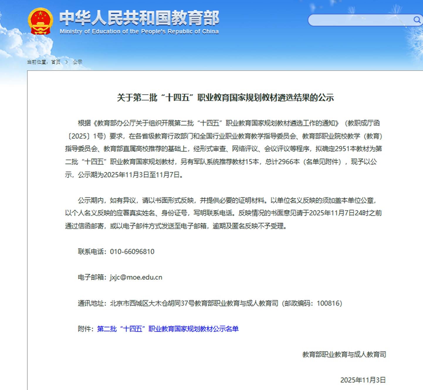 此次两部教材同时入选,标志着学校在职业教育教材建设领域获得又一项国家级认可,充分展现了学校深化教育教学改革、推进优质教学资源建设的显著成效。