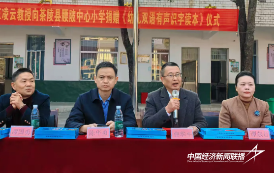 中经联播讯(通讯员 陈思巧 贺社明 谭国勇)12月10日上午,湖南茶陵县腰陂中心小学举行90岁湖南科大退休老教授王凌云捐赠《幼儿双语有声识字读本》仪式。茶陵县教育局党委委员、副局长谭燕君,腰潞镇镇长陈华勇等出席,与全校师生共同见证爱心时刻。