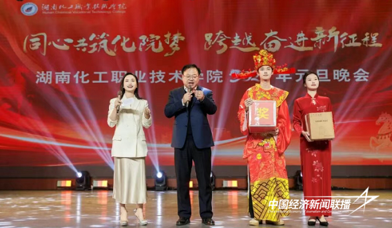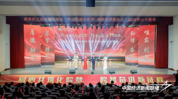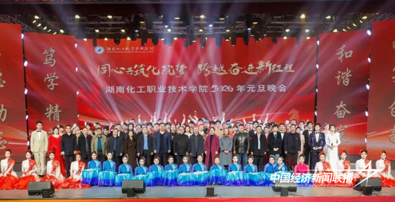 中经联播讯 2025年12月30日晚,湖南化工职业技术学院“同心共筑化院梦,跨越奋进新征程”2026年元旦晚会在学校礼堂隆重举行。学校师生代表欢聚一堂,共迎新年。2026年元旦,湖南化工职业技术学院内华灯初上、欢声雷动,一场以“同心共筑化院梦,跨越奋进新征程”为主题的2026年元旦晚会盛大举行。全校师生代表齐聚一堂,以满腔热忱迎接新年的到来。