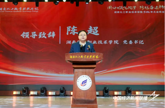 湖南化工职业技术学院党委书记陈超登台致辞。他深情回顾了过去一年学校在教育教学、科研创新、人才培养等方面取得的显著成就,对全体师生的辛勤付出表示衷心感谢,并寄语大家在新的一年里携手并肩,以更加昂扬的姿态迈向新的征程。