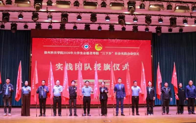 中经联播讯(林建辉 马海彤 通讯员 许亦骁)青春适逢盛世,奋斗正当其时。1月9日,漳州科技学院2026年大学生志愿者寒假文化科技卫生“三下乡”社会实践活动启动仪式隆重举行。校长李奠础、副校长林超融、各二级学院、职能部门主管及社会实践团队指导老师和学生代表参加,齐聚一堂,共襄青春盛会,共谋实践育人新篇。会议由校团委书记刘溢程主持。