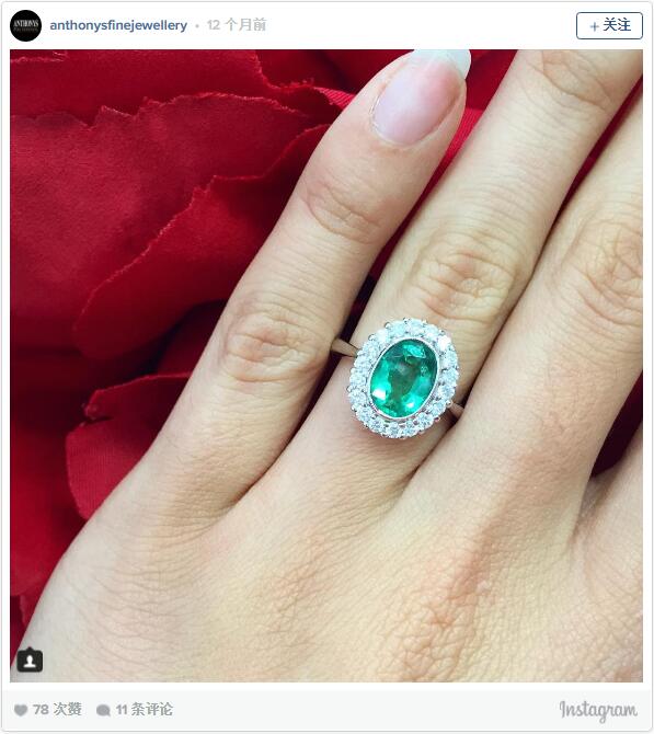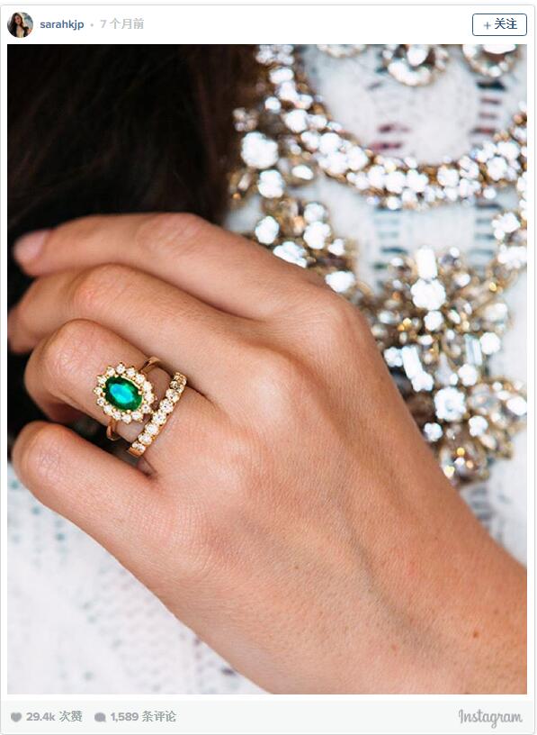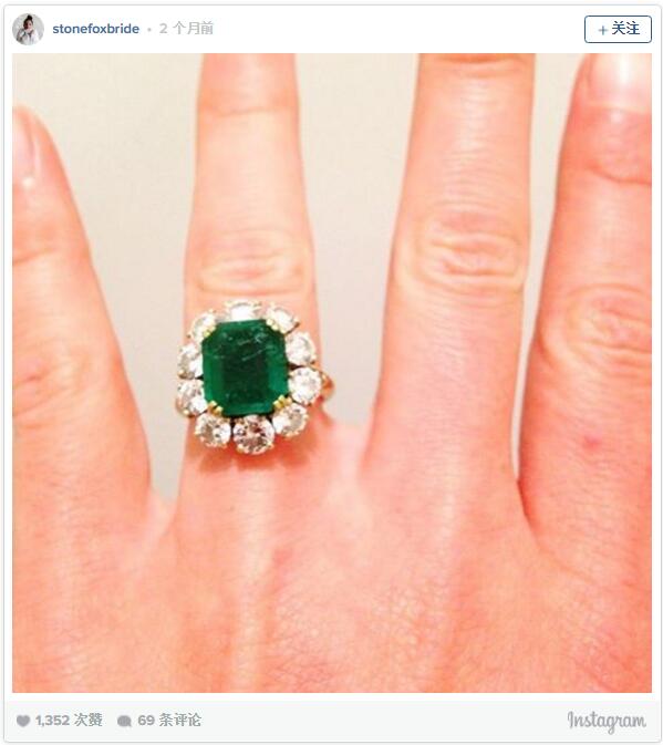 Instagram网友晒祖母绿戒指
