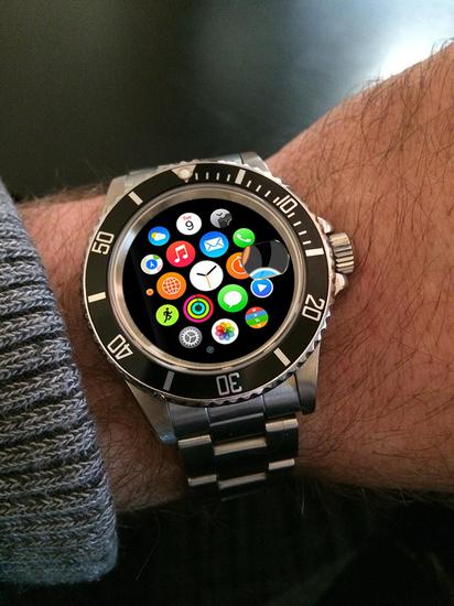 现在不是流行联名嘛,LV和Supreme都联名了,为什么劳力士不能和苹果联个名,让我们把劳力士和Iwatch结合一下吧,正面还是劳的样子好了,不管DJ也好、SUB也好、Daytona也好。背面加上Iwatch的感应装置,可以连上Iphone,我觉得挺棒的。至于还能多出点什么功能,让大家自己想想吧!