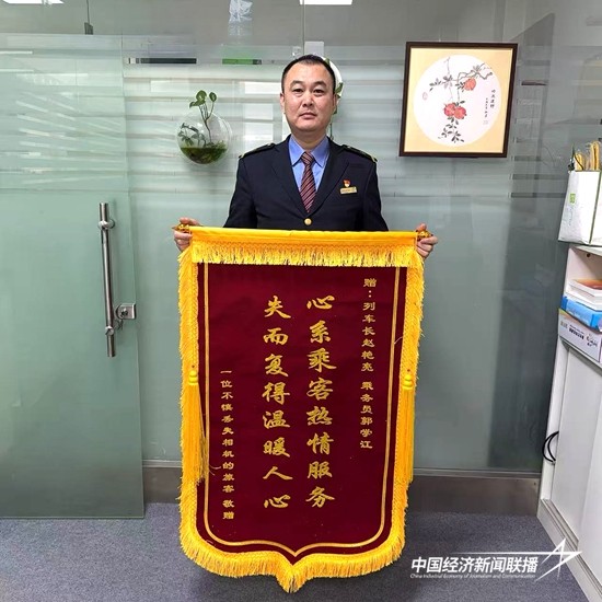 中经联播哈尔滨讯(通讯员郭庆文)一面印着“心系乘客热情服务,失而复得温暖人心”的锦旗近日被送到了哈尔滨铁路客运段北京车队,这份特殊的感谢,让列车长赵艳亮和乘务员郭学江的暖心事迹被更多人知晓,也让铁路服务的温情在冬日里传递着。