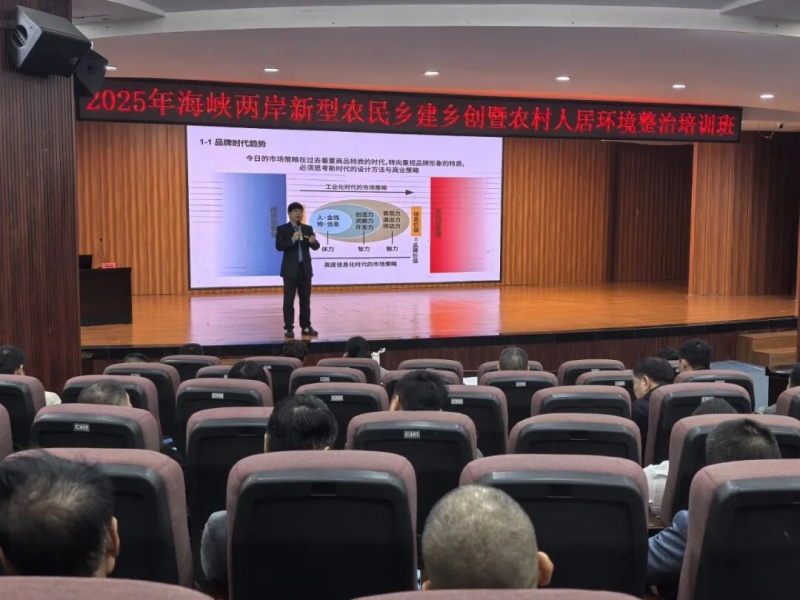 尤为亮眼的是,该校林昆范博士(台,福建省高层次人才)带来《闽台乡建乡创助力乡村建设》专题分享。林昆范结合20年两岸乡建实践经验,深入解读台湾地区乡村规划、古厝活化、文创赋能的先进理念,让学员领略两岸乡建思路的互补性,为后续合作筑牢基础。全程课程兼具理论深度与实践温度,让近百名学员直呼“学有所获、满载而归”。