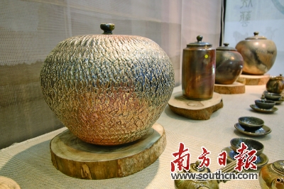 对于新柴烧在台湾产生的背景,吴金维在南方日报记者面前,则给予了更为准确地解释。据其介绍,新柴烧是台湾陶艺工作者在参考了龙窑、蛇窑、凤凰窑等各种窑 体的燃烧效果,综合研制后所创出的新窑体。这种创新烧制方法,融合泥土中微量金属元素的特性,使作品触感温润、色泽多变,展现出深邃的意境。