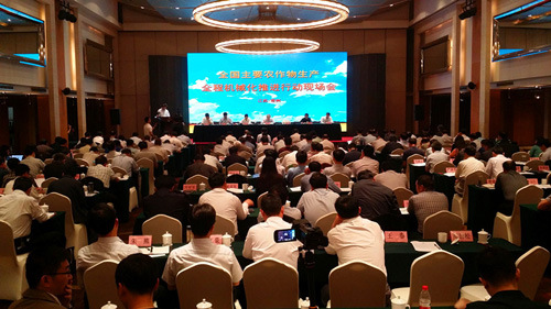 会上公布了全国首批基本实现全程机械化县名单,并对获评全国粮食生产全程机械化整体推进示范省的江苏省农机局和吉林省农委进行授牌并宣布成立农业部全程机械化推进行动专家指导组。江苏省农机局、吉林省农委、甘肃省农机局、江苏省常州市政府、山东省临沭县政府、雷沃重工公司等单位代表做经验交流发言。