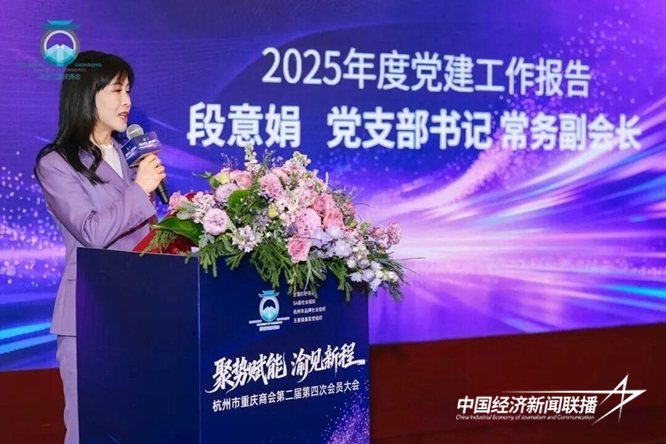 杭州市重庆商会党支部书记、常务副会长段意娟展现党建引领会建的坚实步伐与突出成效,彰显商会坚定政治方向与战斗堡垒作用。段意娟表示,将在上级党组织领导下,在商会理事会和全体会员支持下,不断提升党建工作水平,为商会和地方发展作出更大贡献。
