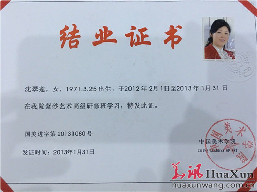 沈翠莲,工艺美术师,中国工艺美术学会会员,江苏省工艺美术学会会员,江苏省陶艺学会会员,江南大学艺术设计专业本科学历,并在中国美术学院紫 砂艺术高级研修班进修,1971年3月出生,1989年开始学习制壶工艺创作,顾景舟大师、蒋蓉大师再传弟子,师从研究员级高级工艺美术师、中国工艺美术 大师钱丽媛。 从事制壶工作已经28年。创作工艺精湛,匠心独运,风格鲜明,品味独特。创作中以传统光货为基础,既继承顾景舟大师、钱丽媛大师其原有风格,又善于推陈出 新,揉合进自己的独特风格,充分利用紫砂五色土表现大自然之灵气。花货得到钱丽媛大师指点及蒋蓉大师真传,所制壶形线条流畅,气韵生动,装饰巧妙,内涵丰 富,受到了同行和艺术界人士的广泛认可和高度赞誉。曾多次为慈善事业和中国红十字会捐赠作品为慈善事业奉献爱心,作品多次在国内外大型展览中获奖,并被国 内外新闻媒体广泛报道。华夏城乡文化书画研究院聘请她为高级工艺美术顾问。著名书法家沈鹏、欧阳中石、中国书法家协会主席张海、国学大师文怀沙先生等为其 作品亲笔题字。
