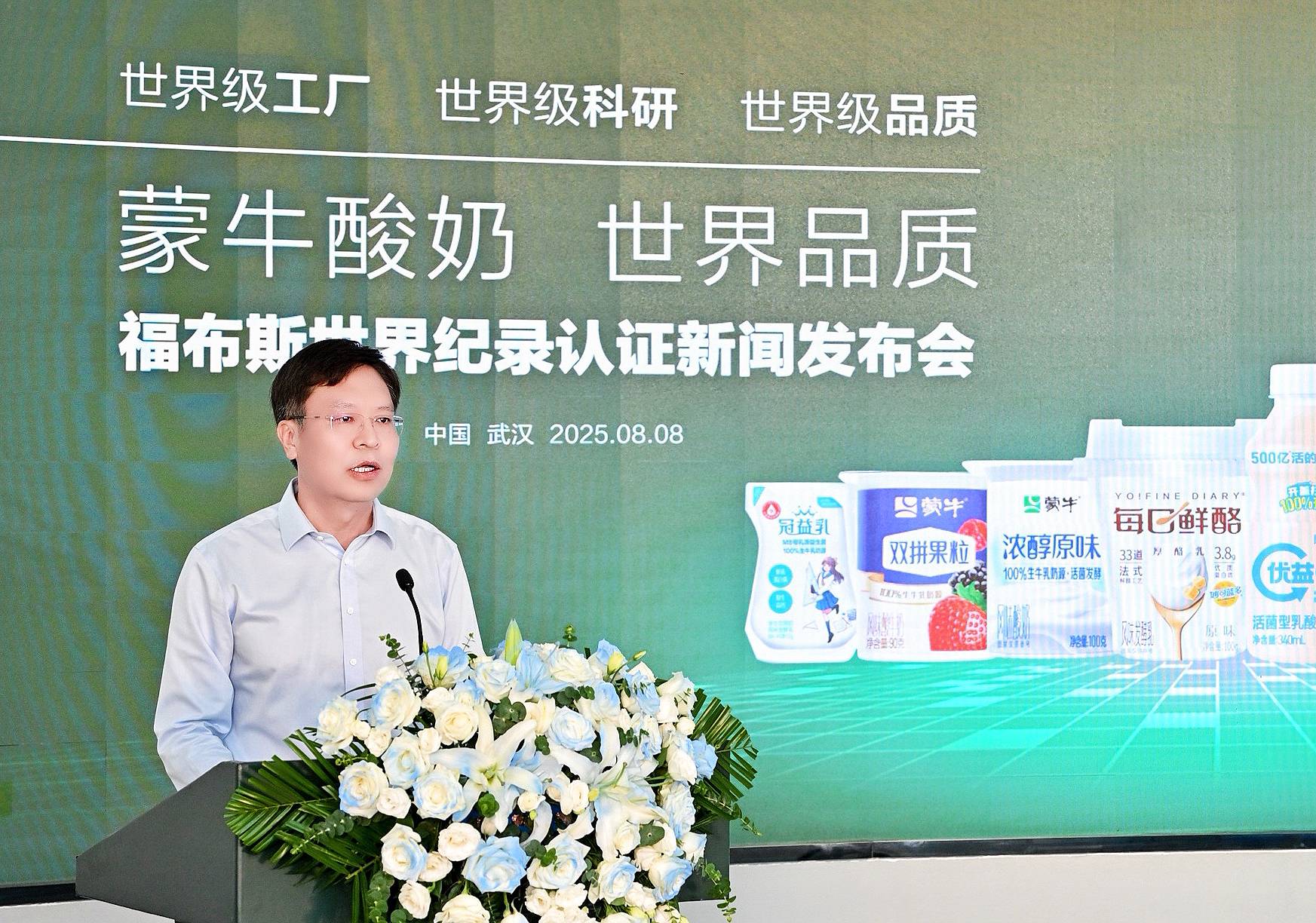 8月8日,以“蒙牛酸奶 世界品质”为主题的FWRC福布斯世界纪录认证新闻发布会在蒙牛高科乳制品武汉有限责任公司(以下简称:蒙牛低温武汉工厂)举行。