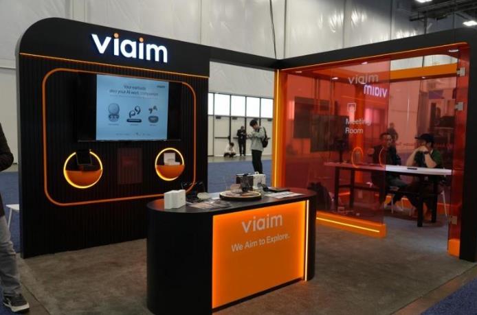 中国AI硬件明星企业「未来智能」也携旗下全球化品牌viaim再度参展,以“We aim to explore”为主题的展台,凭借科技感十足的设计与沉浸式场景体验,成为展会焦点。