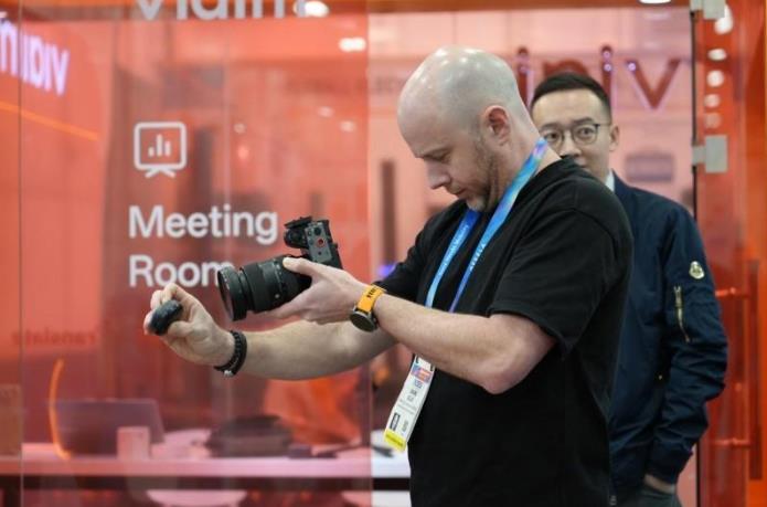 在黑、白、橙三色交织的viaim展台,讯飞AI会议耳机Pro3与Air2两款产品正吸引着大量观众驻足体验,他们佩戴着耳机,亲身体验着AI如何将语音实时转化为结构化的文字、跨语言的知识与可执行的待办事项。