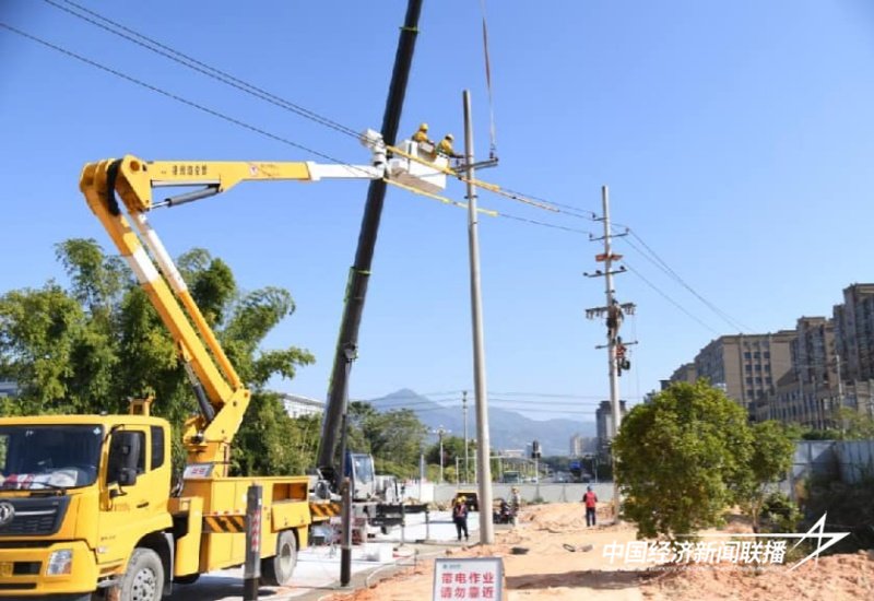 中经联播讯(林建辉 马海彤 通讯员 方为生 方志杰 方诗淇)1月7日,在福建省漳州市云霄一中新校区迁建项目附近,国网云霄县供电公司组织带电作业人员及施工队,加紧在10千伏石马湖支线1号杆与2号杆间重新组立一根电杆。