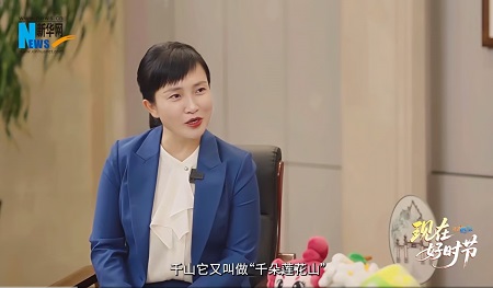 据介绍,该节目以《四季皆盛景 千山邀君赴佳约》为题,视频时长3分多钟。节目中,李晓梅娓娓道来,以十分接地气和富有亲和力的语言,展现了千山的自然之美、文化之厚以及汤岗子温泉的康养之优。“千山又叫千朵莲花山”“来千山我‘氧’你”“来到汤岗子,不被泥埋等于白来”……李晓梅的介绍,配上千山大气磅礴的画面,精美的视频给广大观众留下美好的观感体验,令大家对千山之旅心生向往。