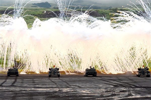 据国际在线报道,该演习分别在25日、27日和28日举行,共计进行5场演习,其中3场安排在白天,两场安排在夜间。富士综合火力军演举办的初衷,是要让自卫队关联学校的在校生充分了解现代战争的真实面貌。