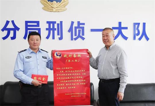 在民强派出所,分局长刘凤升向民强派出所发放慰问金,姚杰同志向民强派出所颁发了喜报。刘凤升同志对民强派出所各项工作给予了肯定。他指出,民强派出所在扫黑除恶专项斗争工作中战绩可喜,在下一步的工作中,特别是围绕重点攻坚、专项治乱还要加大力度。商委红肠案件就是对辖区企业的有力保护,今后要围绕辖区治安整治、作风整顿、优化营商环境、办事不求人等工作要求多开展工作,保持状态,随时接受指令,高效开展工作。民强派出所要力争在全局扫黑除恶专项斗争中以及各项工作中当排头、争先锋。