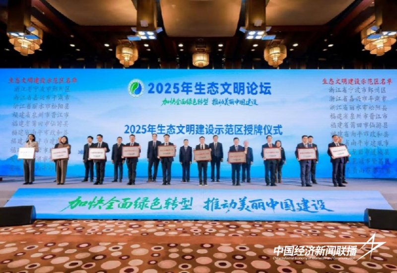中经联播讯(林建辉 马海彤 通讯员 周洁 钟晋)12月25日,国家生态环境部公布2025年生态文明建设示范区和2025年“绿水青山就是金山银山”实践创新基地名单。福建省龙岩市连城县委副书记、县长赖育忠代表连城县在北京领取了生态文明建设示范区荣誉牌匾。