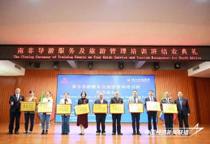 中经联播讯(林建辉 马海彤 通讯员 高舒琪)近日,由中华人民共和国商务部主办、漳州科技学院承办的2025年南非导游服务及旅游管理培训班在漳州科技学院举行结业典礼。来自南非的23名官员、专家学者和技术人员经过培训顺利结业。本次培训旨在促进中南两国在旅游领域的深度交流与合作,来自南非的学员通过系统学习和实地考察,深入了解了中国在导游服务规范与旅游目的地运营管理方面的成功经验。