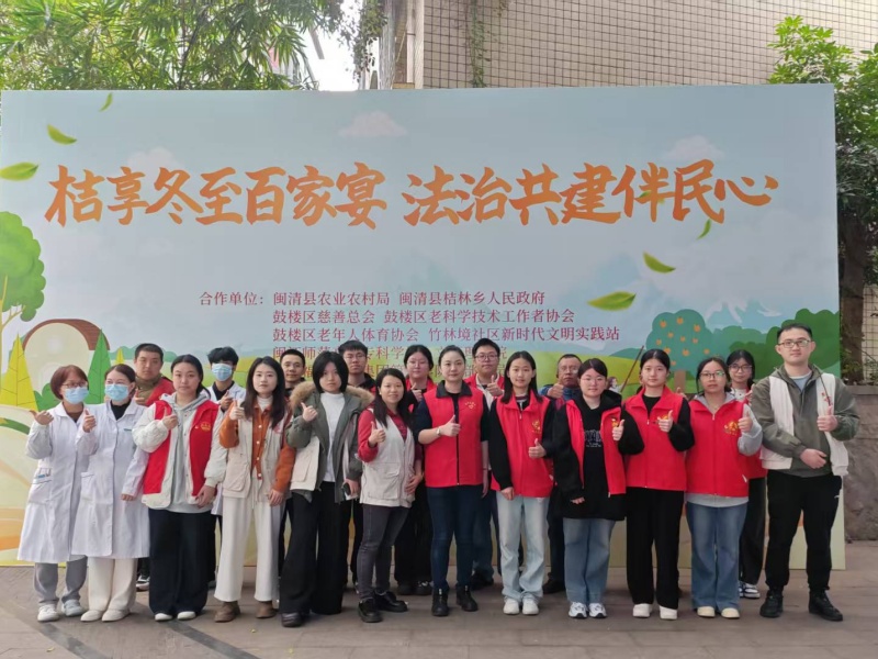 中经联播讯(陈金新 林旭霞 通讯员 吴宸珺)冬至岁寒,情暖社区。福建省福州市鼓楼区慈善总会秉持“以人为本、慈善为民”初心,深耕民生关怀。近日,鼓楼慈善总会联合竹林境社区、闽江师范高等专科学校人文管理学院等多家单位,共同举办“桔享冬至百家宴 法治共建伴民心”主题活动,将民俗温情、法治宣讲、健康服务、文体娱乐与暖心慰问深度融合,把浓浓关怀精准送达社区居民心中。