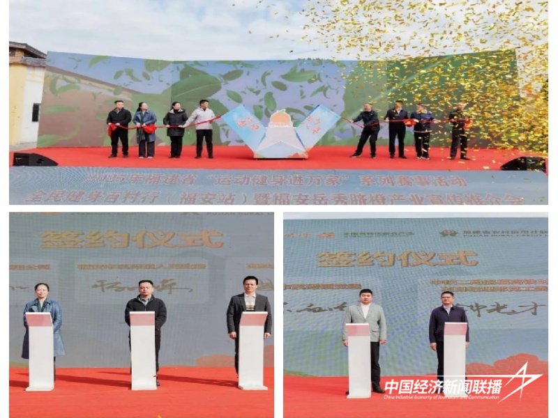 开幕式现场,启动了2025年福建省“运动健身进万家”全民健身百村行(福安站)暨福安岳秀脐橙产业宣传推介会仪式。随后,现场举办了福安岳秀脐橙品牌专场推介,从文化底蕴、产品品质到产业前景,全方位展现了这一“黄金名片”的独特魅力。福建省旅游有限公司、福安市溪潭镇人民政府和海峡乡村杂志社三方共同签战略合作协议,并同期发布溪潭镇精品文旅线路,多条融合自然风光与乡土人情的路线,为游客深度体验福安乡村之美提供了全新选择。为彰显产业实力,会上权威发布了《福安岳秀脐橙含富硒最新数据》,以详实数据展现产业规模、产出效益与市场前景。活动现场还举行了福安市溪潭镇党委与中铁二局温福高铁3标项目经理部党工委共建签约仪式,通过党建引领凝聚发展合力,为产业振兴注入新动能。