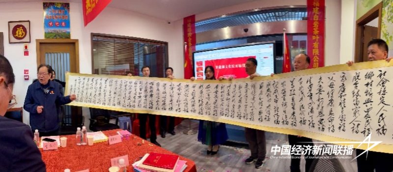 福文化专家方庆云现场挥毫,创作多幅福字书法长卷,笔锋苍劲有力、韵味十足,将活动气氛推向高潮。与会嘉宾共同品鉴作品,探讨福文化与产业融合路径。多家企业代表提出,将结合自身业务开发福文化主题产品,如茶礼、文创酒等,助力传统文化市场化转型。