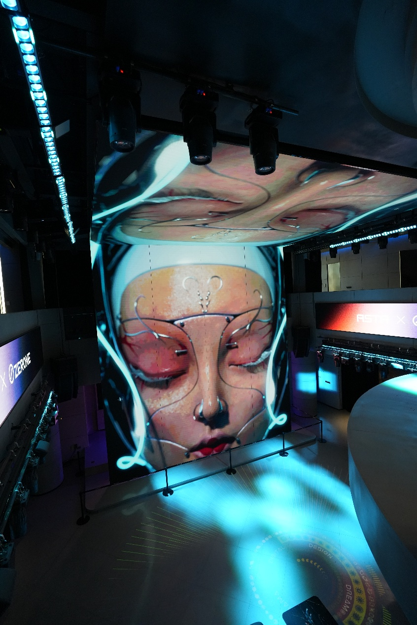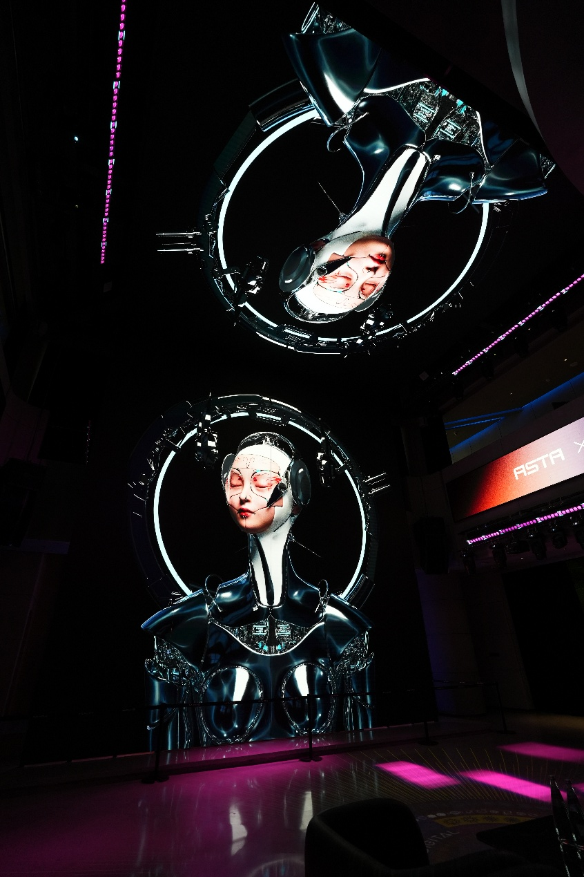 作为发布会的开篇亮点,ASTA数字人视频演出依托MADverse摩境数字艺术空间的沉浸式环境,将前沿科技与艺术美学完美融合。演出中,ASTA凭借超仿真建模技术,精准复刻人类面部表情与肌肉运动细节,裸眼3D效果让数字人身影仿佛突破屏幕边界,与现场电子音乐形成多维感官冲击。