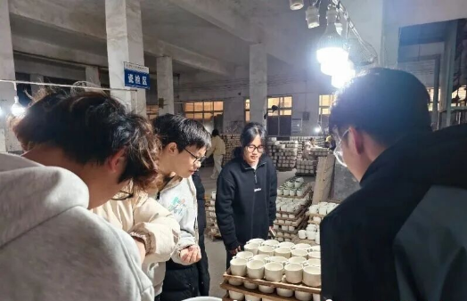 实践团队先后走进湖南华日瓷业有限公司和醴陵和丰瓷业有限公司,深入生产一线观摩陶瓷注浆、修坯、釉烧等关键工艺流程,并就操作细节与技术人员展开交流。在随后的座谈中,企业代表围绕“釉料稳定性控制”“视觉识别瓷器缺陷”等实际生产难题,与师生展开研讨。项目组成员结合专业知识积极建言,在思维碰撞中形成初步解决思路。